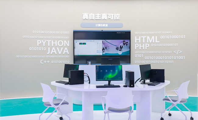 其中,擎云智慧教育-计算机教室以华为擎云自主创新台式机为核心,整机通过国家电子计算机质量检验检测中心信息安全增强级认证,从底层确保了教学环境的安全可靠;支持内置50余种授课工具,支持广播教学、分组讨论等功能,提升学生学习兴趣;其远程运维能力可实现设备的集中统一管理,提升机房管理效率。